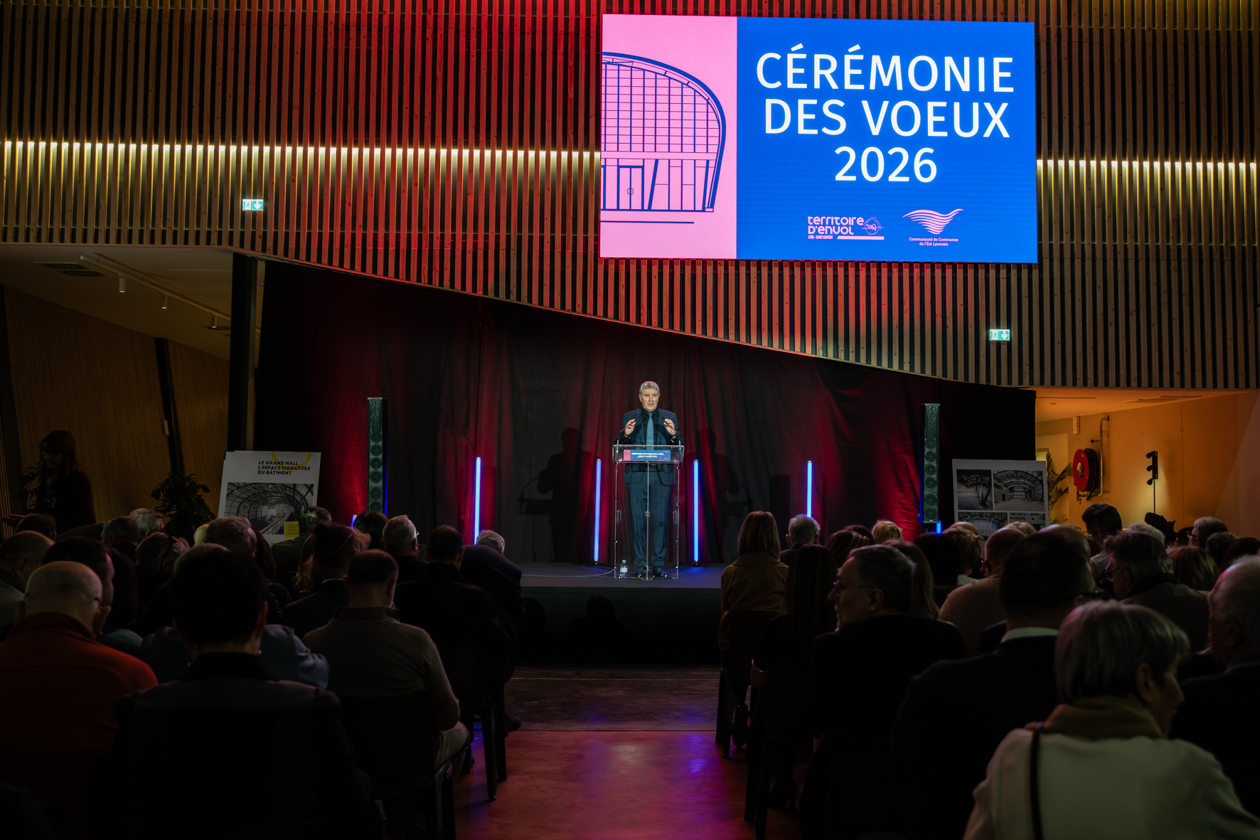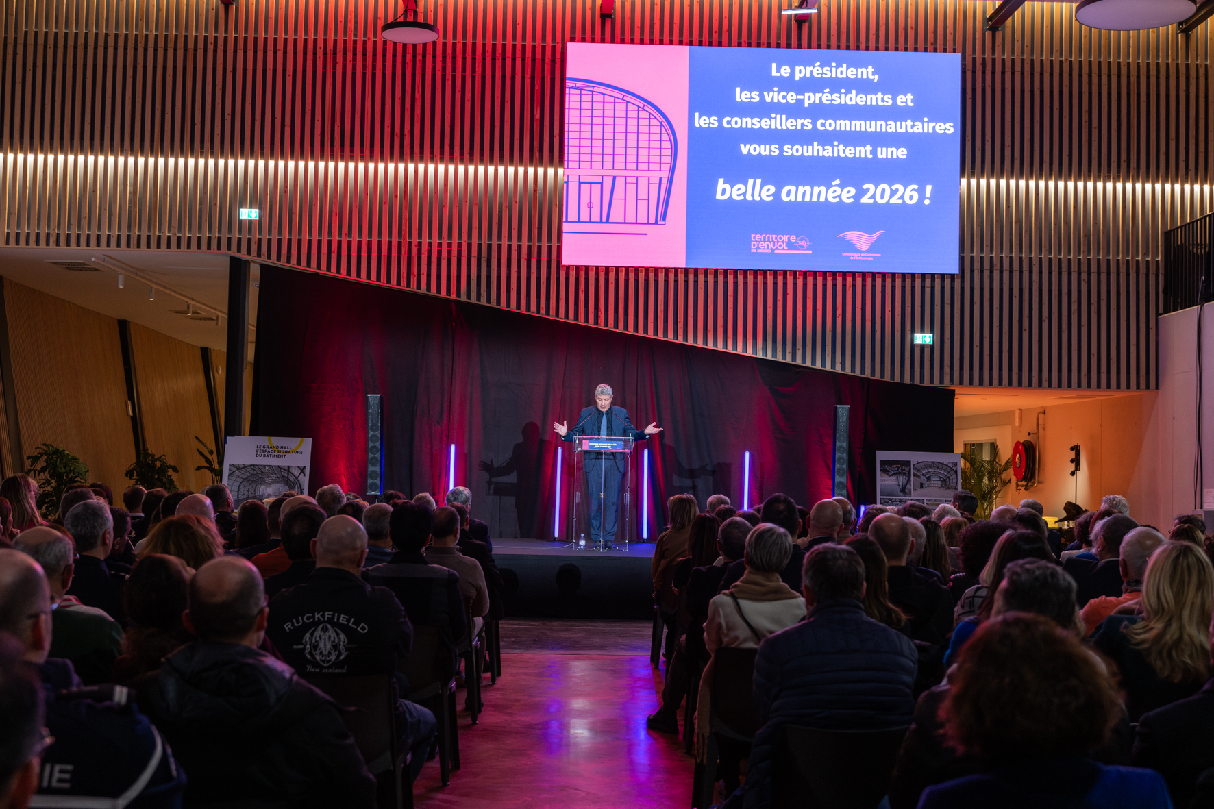 Organisée dans la halle récemment rénovée, elle a rassemblé près de 300 personnes, parmi lesquelles les membres du conseil communautaire, les élus locaux, les partenaires institutionnels, les représentants de l’État ainsi que les acteurs économiques. L’occasion de les remercier pour leur contribution au dynamisme et au développement du territoire.